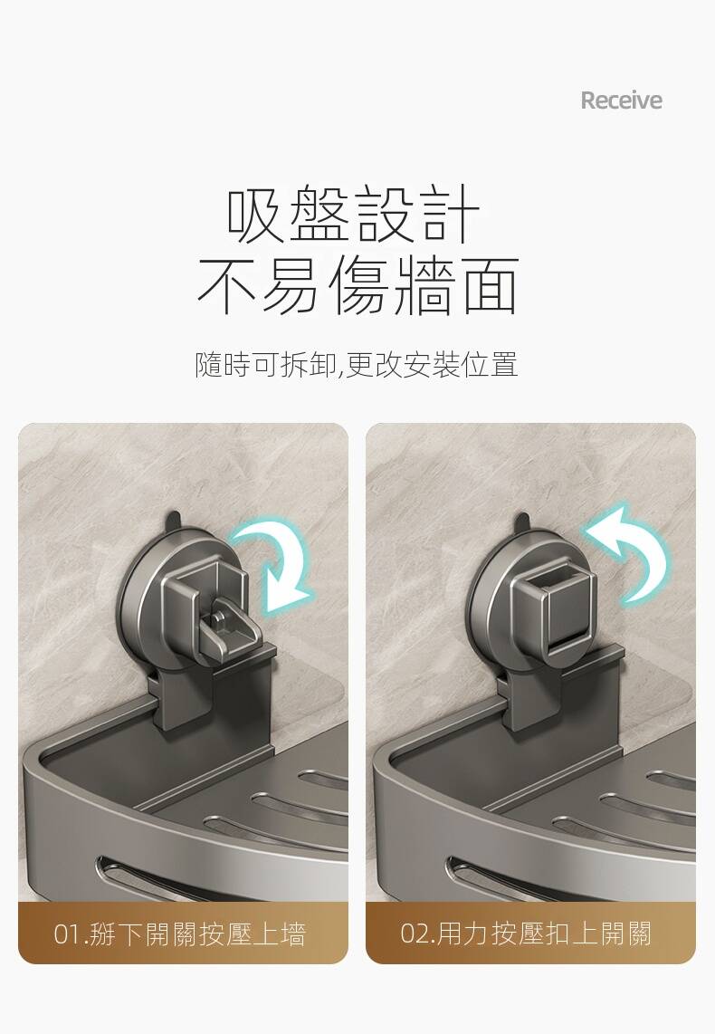 5分鐘前自帶吸盤,可隨時移動重復使用的置物架 免打孔廚房浴室衛生間三角置物架多用途壁掛收納架毛巾架 - 【超夯下殺】買一送二,共三入組 NT$998