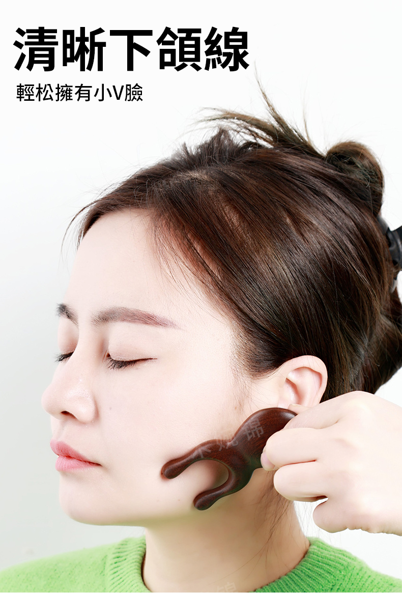 11分鐘前多功能按摩梳 檀木按摩梳子青蛙鼻子按摩器 - 【面部提拉 清晰下頜綫】6入組-NT$1498